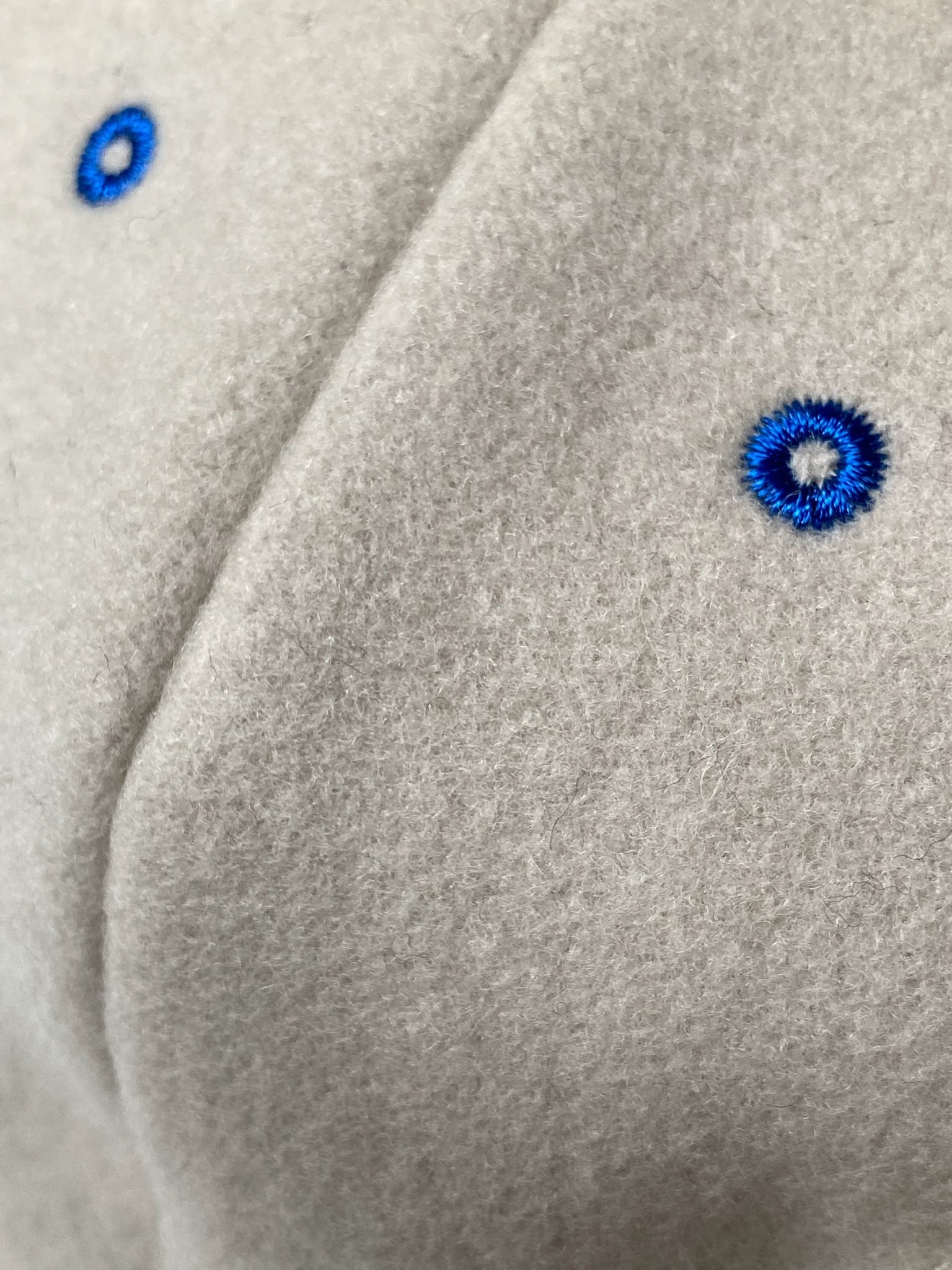 ハトメ刺繍の鮮やかなカラーが際立ち、コーディネートのアクセントとしても優秀です。