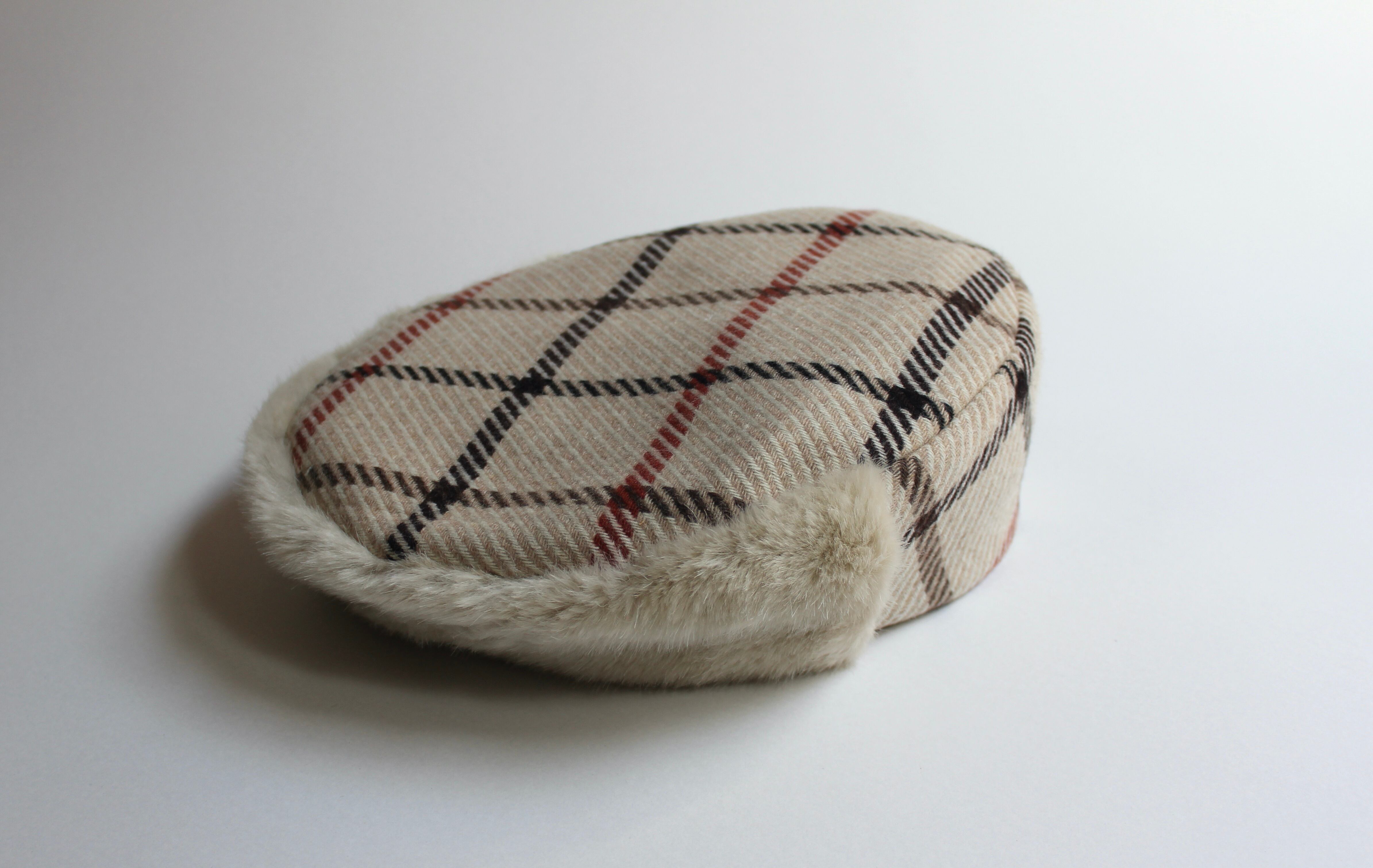 高品質なecoファーとウインドーペンチェックが特徴のベレー帽です。