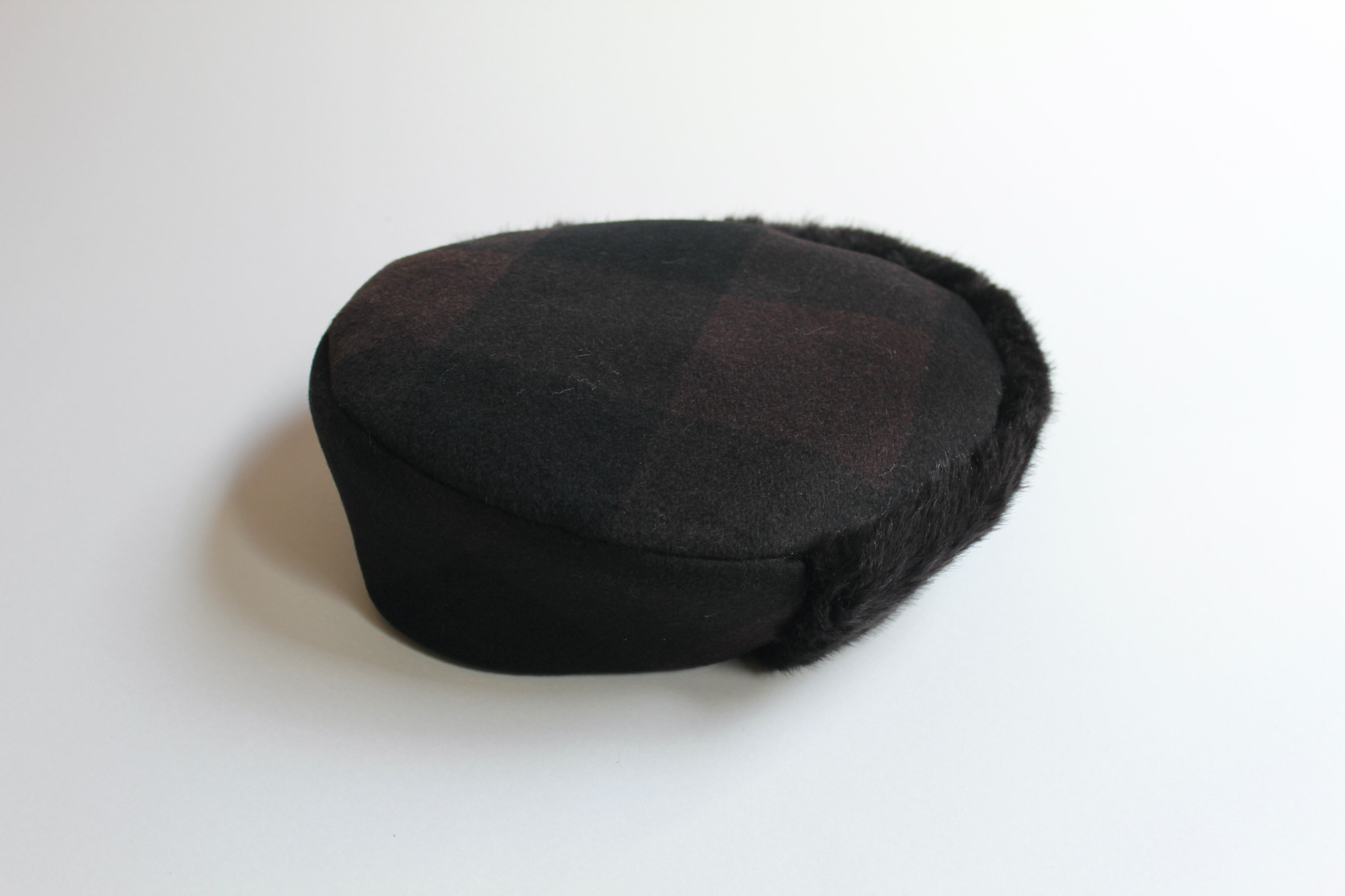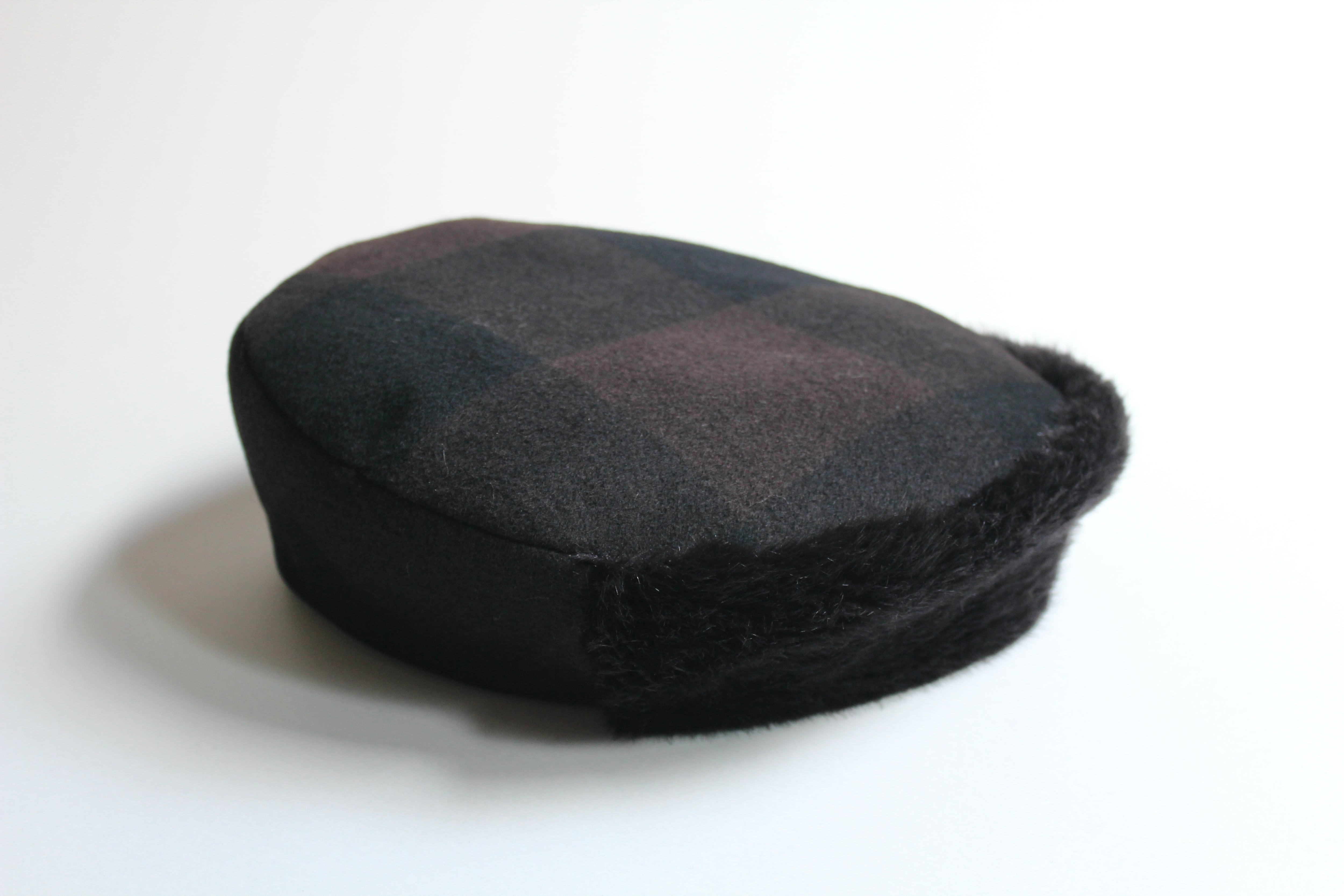 高品質なecoファーとウールモッサの大きなブロックチェックが特徴のベレー帽です。