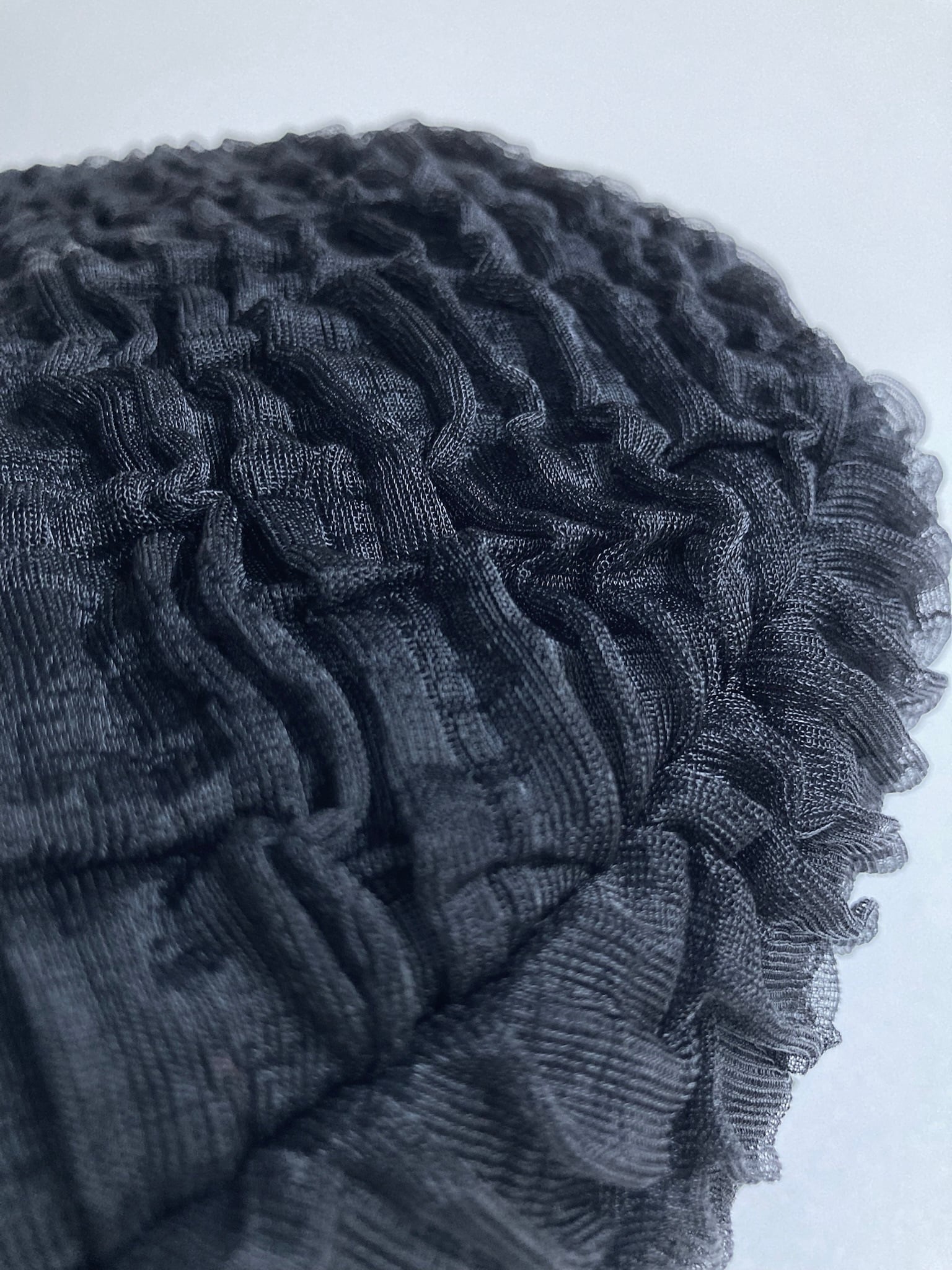 「表情の面白いドレープが魅力の」ベレー帽。 コンパクトな形ながらも、ピンタックでボリューム感がある素材で、かぶったときに顔周りがスッキリ整う優秀なベレーです。